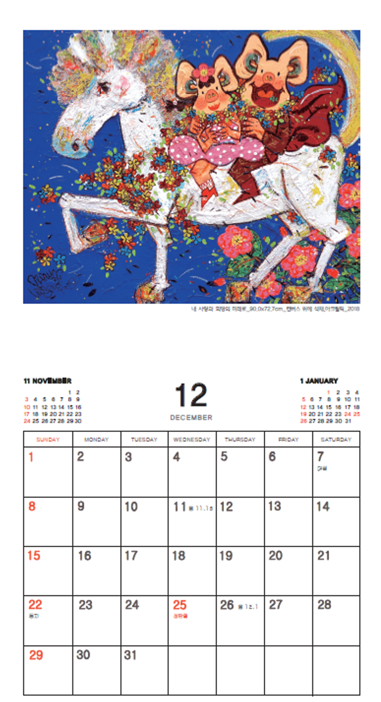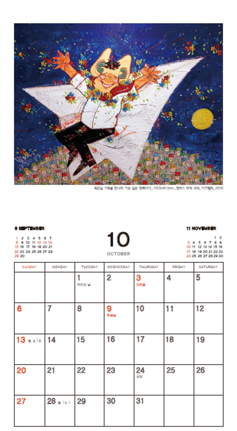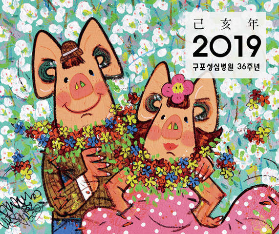 그 무엇보다 그림을 보며 ‘행복’의 힐링을 강조하는 그의 작품 속 돼지는 천연덕스럽게 웃고 있는 모습들이 때로 보고 있자면, 현대인들의 바쁜 일상 속에서 어쩔 수밖에 웃을 수 없는 우리의 현실상을 반영하여 보여주고 있다.