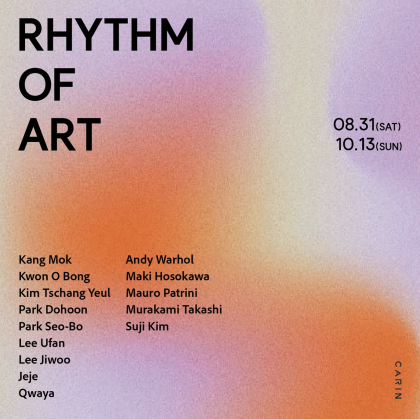 Rhythm of Art Kang Mok 강목 ㅣ Kwon O Bong 권오봉 ㅣ Kim Tschang Yeul 김창열 ㅣ Park Dohoon 박도훈 ㅣ Park Seo-Bo 박서보 ㅣ Lee Ufan 이우환 ㅣ Lee Jiwoo 이지우 ㅣ Jeje 제제 ㅣ Qwaya 콰야 ㅣ Andy Warhol 앤디 워홀 ㅣ Maki Hosokawa 마키 호소카와 ㅣ Mauro Patrini 마우로 파트리니 31 August – 13 October, 2024